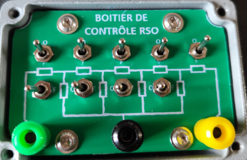 The test box allows you to familiarize yourself with the RSO test by creating short circuits or a ground fault, also useful during your real tests, it allows you to demonstrate the use and operation of the RSO.